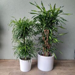 Dracaena Riki 140 cm- Dracena je božanstvena dracena sa zelenim uskim listovima, idealna za dnevnu sobu ili poslovni prostor. Idealno mesto za njeno gajenje je mesto bez direktne sunčeve svetlosti, ali sa dosta difuzne. Previše sunčevog zračenja može dovesti do opekotina i bleđe boje listova. Pre zalivanja vaše Dracene, najbolje je prvo proveriti vlažnost supstrata. Najbolje je pustiti da se između dva zalivanja prosuši supstrat i zalivati destilovanom vodom. U zimskom periodu kada ulaze u fazu mirovanja ređe zalivati. Ukoliko ima previše vlage, ili pak premalo, na listovima će početi da se pojavljuju braon tj smeđe fleke. Potrebno je povremeno okretati saksiju kako bi sa svake strane dobila odgovarajuću količinu svetlosti i davala svoj maksimum lisne mase. List je izdužen i u početku zelene boje a postepeno dobija jaču žutu boju po obodu. Izgledom list podseća na kukuruzov list. Retko u letnjem periodu kada im je idealna indirektna svetlost može dati sitan, vrlo neprimetan cvet. Donje listove kada primetite da su spremni za skidanje sa biljke orežite i prečisitite. Nežno i mlakom vodom povremeno obrišite listove od prašine.