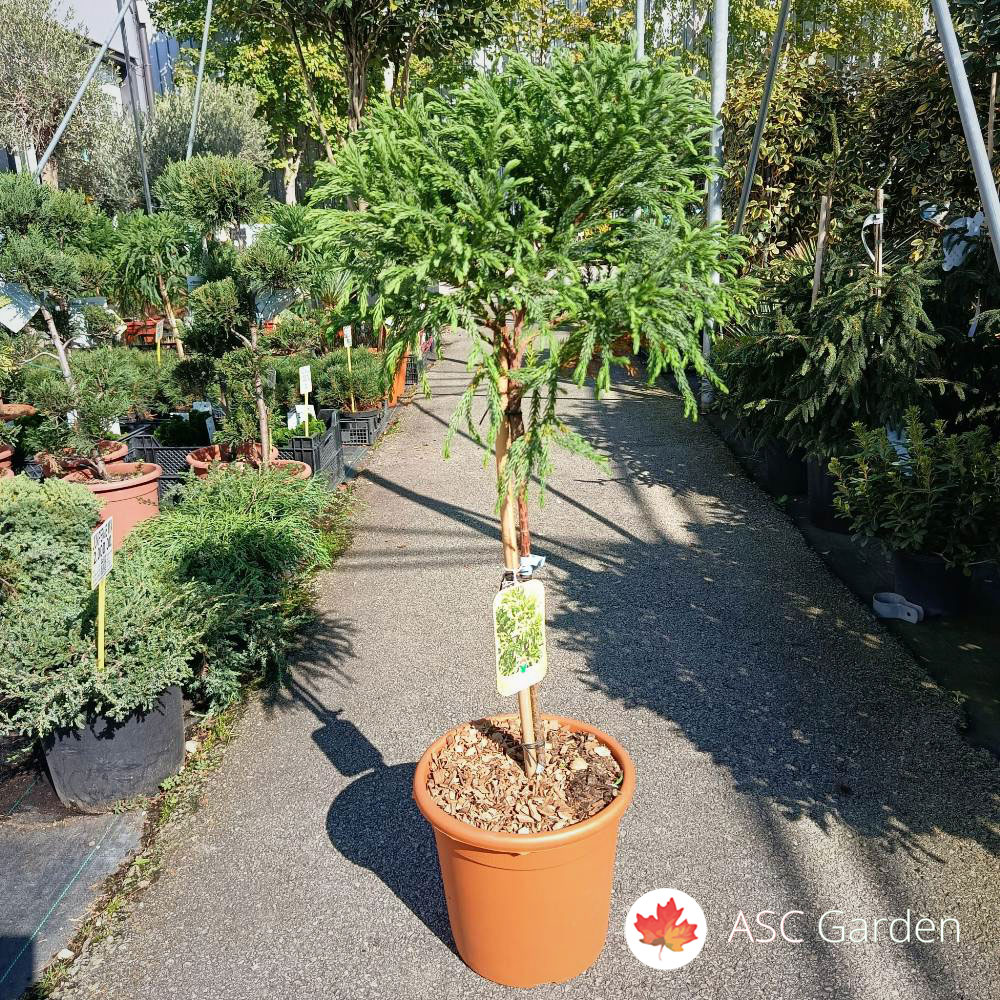 Cryptomeria japonica ‘Globosa Nana’ je elegantna, kalemljena forma japanskog čempresa koja svojim sferičnim oblikom i gustim zelenim iglicama unosi notu luksuza u svako dvorište ili vrt. Ova kompaktna forma, kalemljena na štapu, idealna je za kreiranje sofisticiranih pejzažnih aranžmana, a svojim skladnim oblikom ostavlja utisak otmenosti i prirodne harmonije.