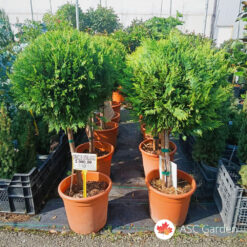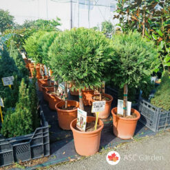 Cupressocyparis leylandii ‘Castlewellan Gold’ je elegantna zimzelena forma na štapu, oblikovana u sferu, koja odiše luksuzom i savršeno se uklapa u moderne i klasične vrtove. Njena gusta, zlatno-zelena krošnja unosi svetlost i dinamiku u svaki prostor, dok kompaktnost forme daje utisak urednosti i otmenosti. Ovaj kultivar je naročito cenjen zbog dekorativnog izgleda tokom cele godine, kao i svoje sposobnosti da oplemeni dvorišta, terase i reprezentativne ulaze.