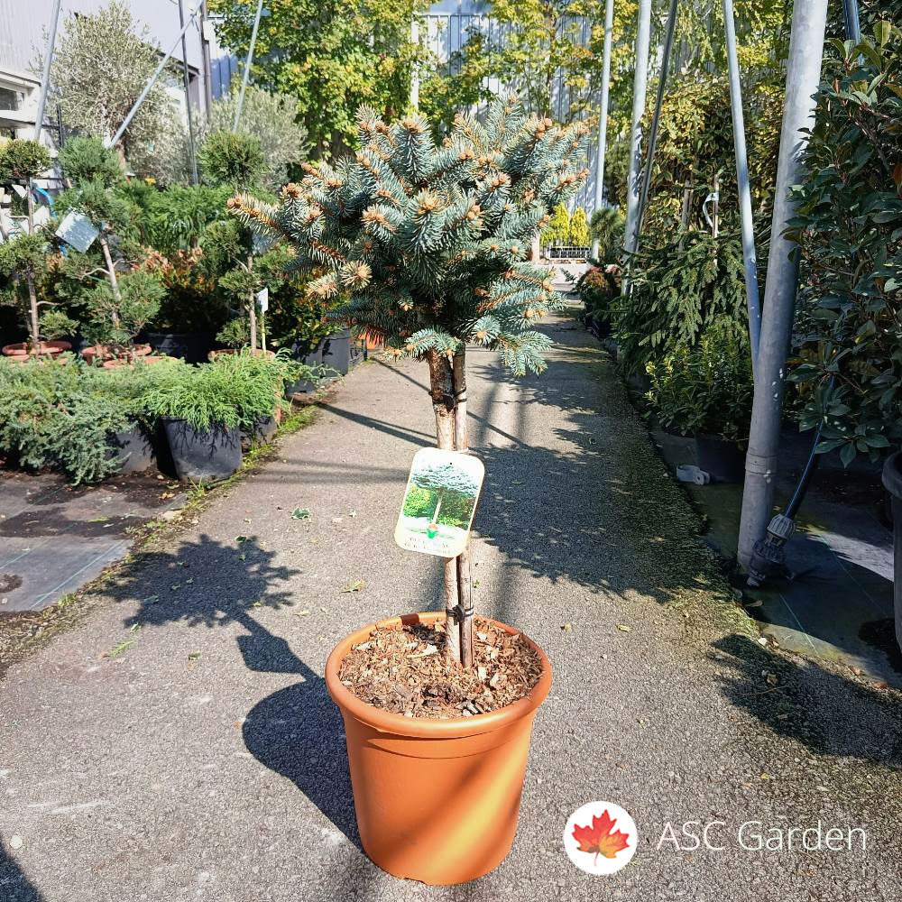 Picea pungens glauca ‘Globosa’ – dekorativna patuljasta forma plave smrče, visine 60 cm u saksiji fi 26 cm, predstavlja izuzetno atraktivan izbor za sve koji žele luksuz i prefinjenost u svom vrtu ili na terasi. Ova elegantna smreča oduševljava svojim intenzivnim plavkastim iglicama i kuglastim oblikom koji daje savršenu geometrijsku formu i osećaj raskoši. Idealan je izbor za soliternu sadnju, kao i za kombinovanje u reprezentativnim baštenskim aranžmanima.