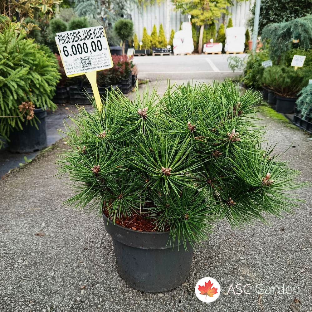 Pinus densiflora ‘Jane Kluis’ je kompaktna, dekorativna forma japanskog crvenog bora koja svojim specifičnim habitusom unosi sklad i mir u svaki vrt. Njegove iglice su guste, bogato zelene i mekane na dodir, dok sama biljka raste sporo i ravnomerno, zadržavajući zaobljen i uredan oblik. Idealna je za japanske bašte, kamenjare, kao i moderne pejzažne kompozicije.