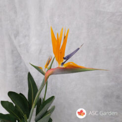 Strelitzia reginae – Rajska ptica 130 cm je božanstvena cvetnica poreklom iz Južne Afrike može se uspešno gajiti u našim uslovima samo je potrebno malo ljubavi i nege. Voli svetla mesta bez direktnog sunca. Kao saksijska biljka najčešće dostiže visinu 150-200cm. Listovi su veoma lepi i elegantni, na dugim, uspravnim lisnim drškama. Naziv Rajska ptica je dobila po neobičnim cvetovima koji se formiraju na dugim cvetnim drškama obliku šarene ptičje glave. Dominira narandžasta boja, sa primesama ljubičaste, plave i crvene. Cvetovi strelicije traju veoma dugo i veoma su cenjeni za cvetne aranžmane. Tokom toplijeg dela godine Rajska ptica može boraviti u bašti ili na terasi, dok se pred zimu mora uneti u svetlu, prohladnu prostoriju. Optimalna temperatura za održavanje biljke u periodu mirovanja je 13-17 stepeni. Poželjno je na dno saksije staviti drenažno kamenje ili u podmetaču kako uspešno oticao višak vode. Strelicija voli vlažnu zemlju, ali ne podnosi zadržavanje vode u korenu koji usled toga može da trune. Neophodno je redovno prihranjivanje tokom vegetacije đubrivom za cvetnice kako bi se podstaklo formiranje cvetova ove prelepe biljke.